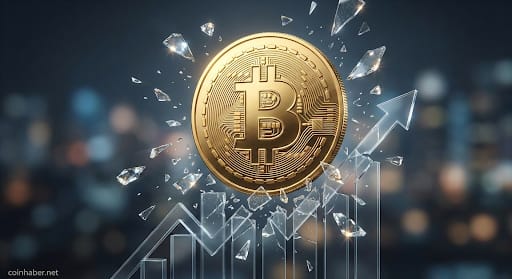 Bitcoin fiyat grafiğinin cam tavanı kırdığını gösteren kurumsal finansal illüstrasyon.